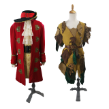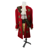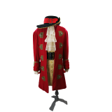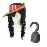 This classic and timeless villain costume consists of jacket, shirt, waistcoat, knee britches, belt, feathered hat, socks, buckles for the shoes, hook and eyepatch.