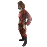 This outfit cosists of a top trousers, hat, belt, bag, knife holder and boots.