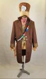 A great quality costume consisting of 10 and 6 hat, brown frock style jacket, satin shirt with cravate, waistcoat, striped trousers and cotton reel sash. Boots and wig also available.