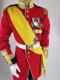 This outfit consists of trousers, jacket with medals and insignia,choice of hat, sash, white leather belt and gauntlet gloves.