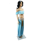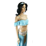 This lovely costume consists of blue strapped top with gold beaded detail, baggy trousers with beaded detail and gold fringing.