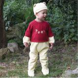 Red knitted front panel with highlights.